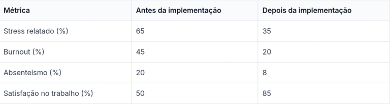 As empresas que adotam programas de bem-estar e apoio emocional reduziram significativamente os níveis de burnout e stress . Os funcionários mais saudáveis são os que têm menor probabilidade de faltar ao trabalho por razões médicas.